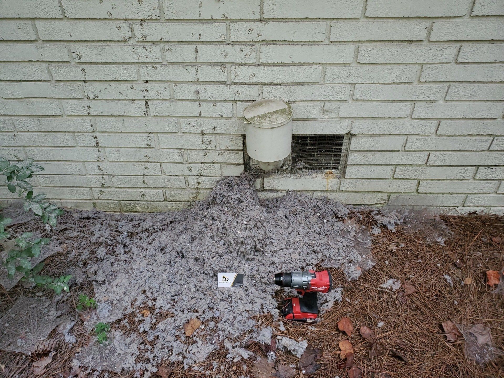 2. There is visible lint overflowing from the vent opening outside and behind the dryer. Lint that escapes the dryer filter eventually makes its way through the dryer ducts where it becomes trapped.
